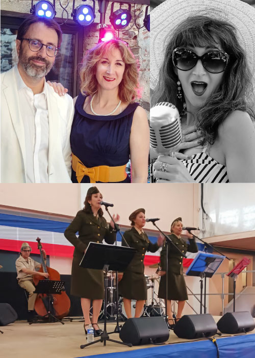 je m’épanouis pleinement dans un répertoire éclectique, mêlant jazz, rock, swing et variété internationale en français, anglais, espagnol, italien et brésilien.